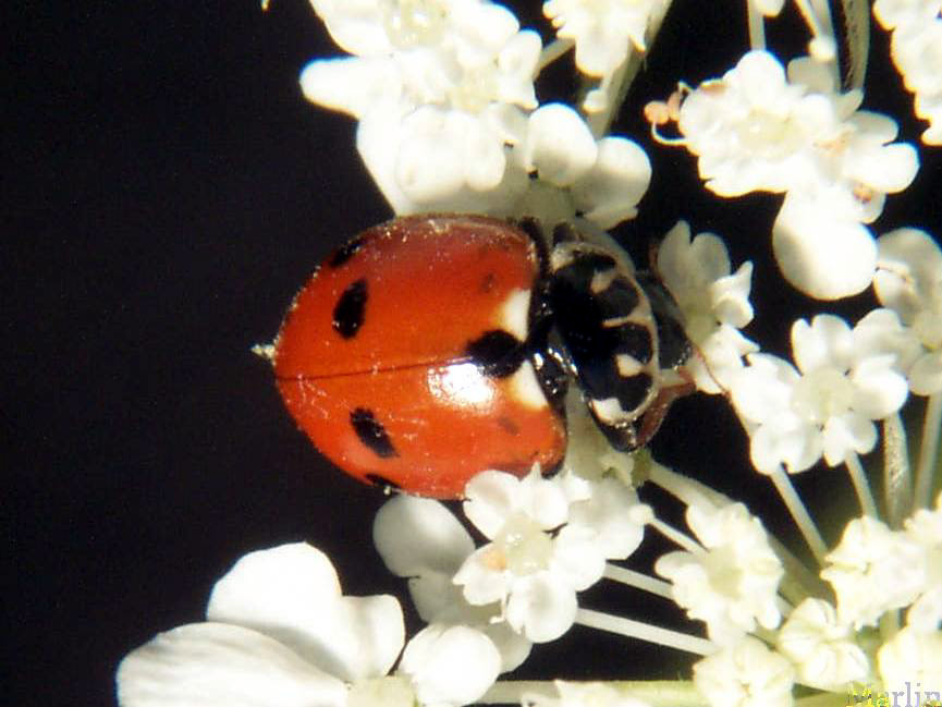These beneficial insects are seen on water hemlock flowers. They are feeding on pollen.Lady Beetles, also called ladybugs or ladybird beetles, belong to the beetle family Coccinellidae. As insects go, they are a very beneficial group, being natural enemies of many insects, especially aphids and other critters that damage plants by feeding on their sap. A single ladybug can consume vast quantities of aphids in its lifetime, perhaps as many as 5,000 or more. There is a brisk business in commercial ladybugs for aphid control, and some of the species found here in North America are actually “invasives” brought from Europe or Asia for such purpose.